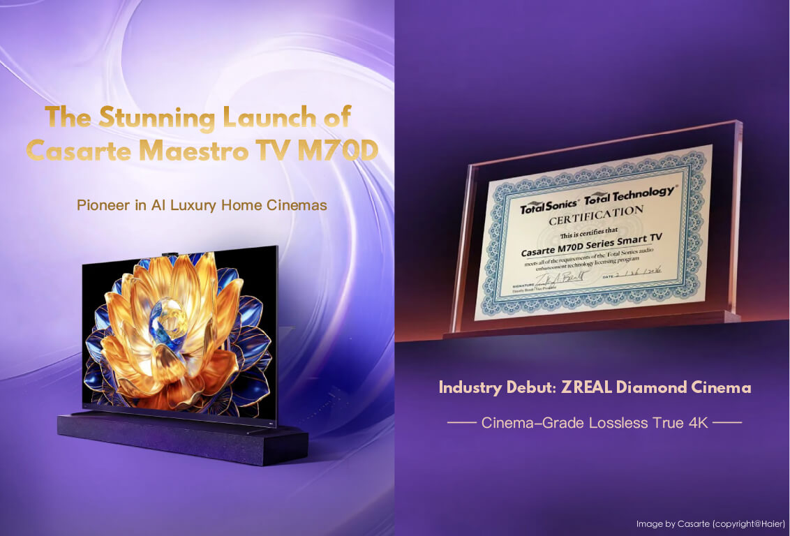 Casarte, the international high-end home appliance brand, has announced the official launch of the highly anticipated, next-generation M70D TV. This marks the latest product to emerge from the long-term, in-depth acoustic technology collaboration between Haier (Casarte) and Total Sonics® ( a division of THAT Corporation®).